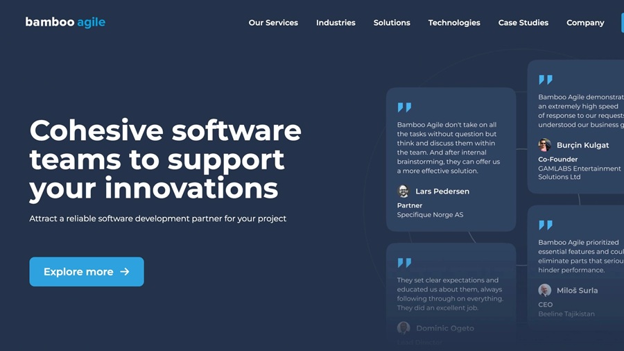 Bamboo Agile is a technology-driven development company that specializes in complex and scalable software systems. The team has strong experience working with advanced tech stacks and enterprise-grade architectures, making them suitable for technically demanding MVPs.